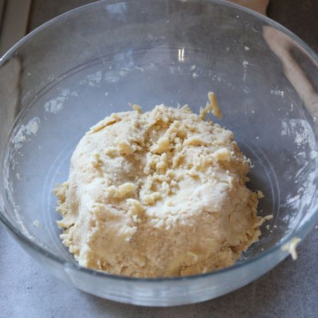 Formez une boule de pâte sans trop la travailler et mettre la pâte au réfrigérateur pendant 1h minimum.