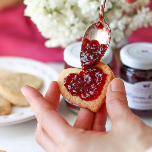 Laissez refroidir vos sablés et nappez-les de confiture de framboise à la rose ou de votre parfum préféré.