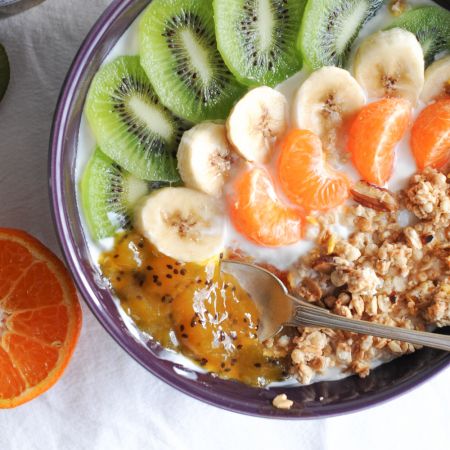 Commencez votre journée du bon pied avec un breakfast bowl vitaminé ! Du fromage blanc ou yaourt végétal ou porridge, des fruits frais de saison (kiwis, mangues, litchis, agrumes, bananes, pommes ...), du granola et votre confiture préférée.
