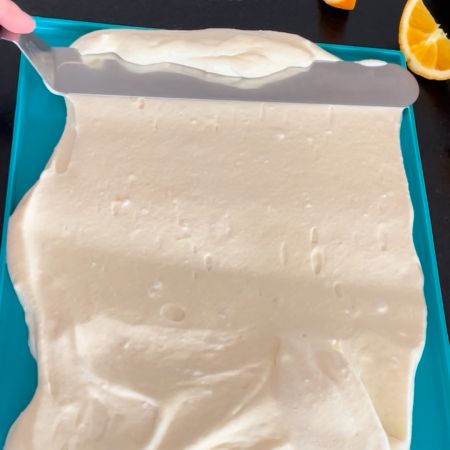 Étaler le mélange sur la plaque de façon bien égale (30x40 cm).