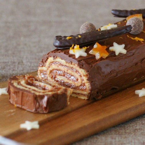 Cette année, vous avez envie d'un dessert de noël fait maison ? Vérène vous livre sa recette de bûche que vous pourrez garnir avec le parfum de votre choix. Ici, nous avons choisi notre confiture orange, poire, chocolat.