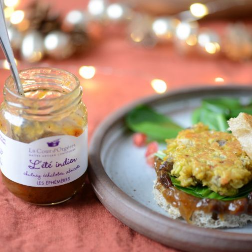 Tartiner la première tranche avec notre chutney "l'été indien" échalotes bretonnes et abricots du Roussillon.