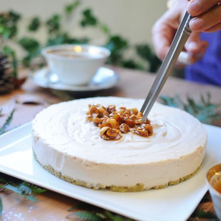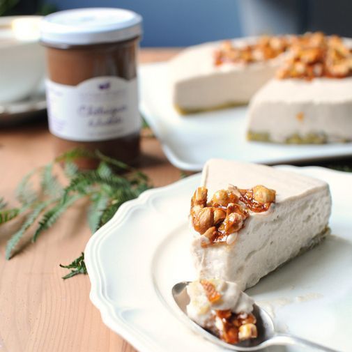 Fondant et croquant à la fois, ce cheesecake sans cuisson est un dessert d'automne délicieusement régressif. Vous retrouvez la saveur de la châtaigne dans une texture crémeuse et le craquant de la nougatine en topping.