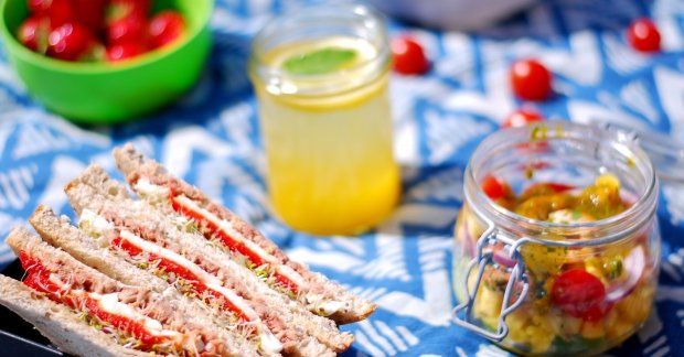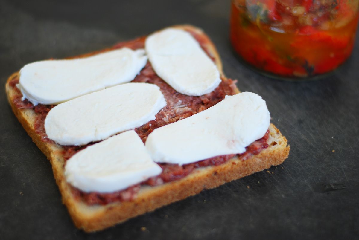 Dans un bol, mélanger le thon émietté avec une grosse cuillère à soupe de confiture framboise-poivron Jardin d'Été. Tartiner ce mélange sur un tranche de pain de mie.