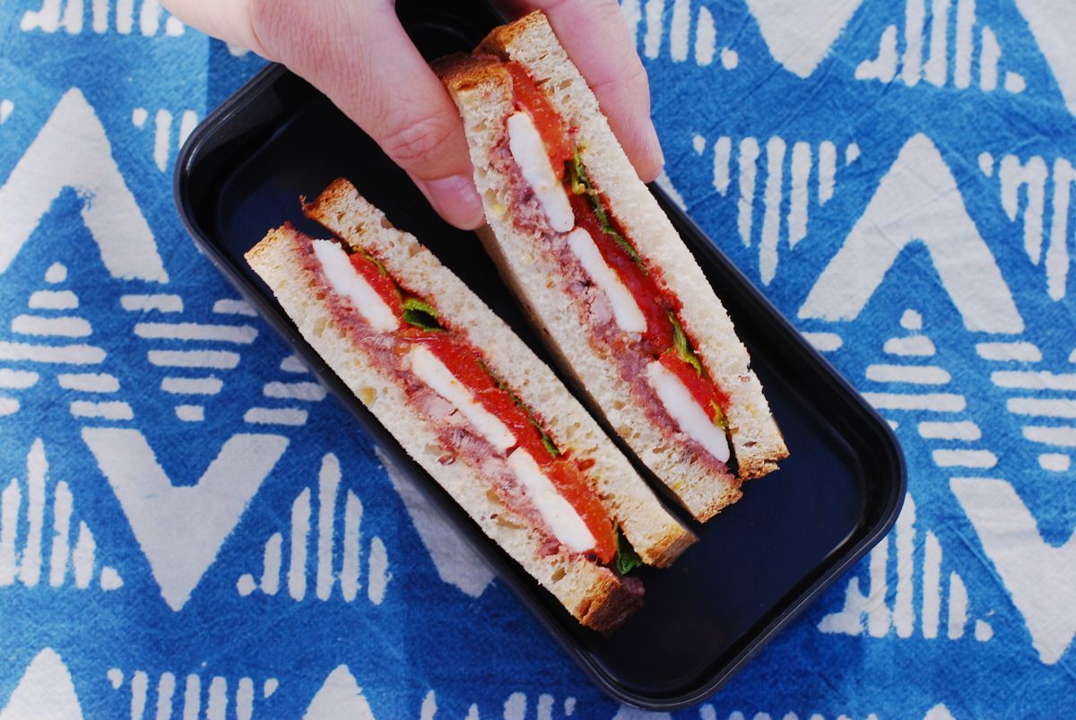 Ajouter quelques graines germées et fermer avec une autre tranche de pain, couper en diagonale (ou simplement en 2, plus facile pour mettre dans une lunch box).