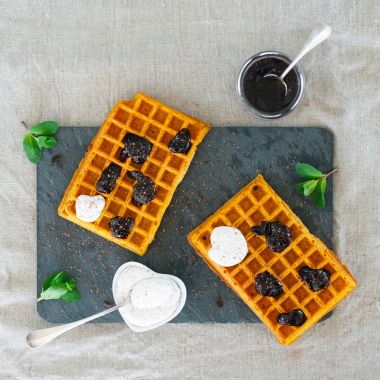 pour un goûter de Mardi GrasGaufres Véganes à la patate douce