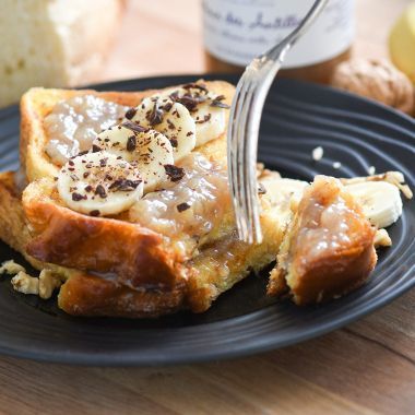 Avec glaçage gourmand chocolat, caramel beurre salé ou confitureFrench toast à la confiture de bananes