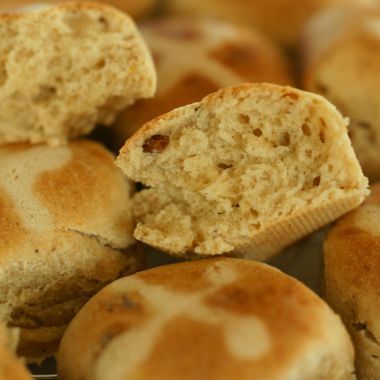A la pâte à tartiner chocolat-noisette ou à la confiture de fruits rougesBrioches hot cross buns