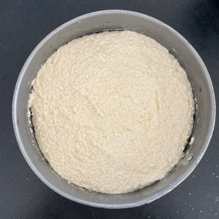 Versez la pâte dans un moule à charnières ou découpez un cercle de papier sulfurisé à déposer au fond du moule.