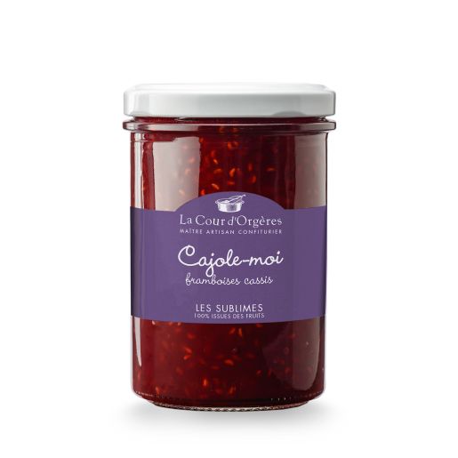 Ingrédients: fruits (UE et non UE)framboises 62 %, cassis 16%, fructose de raisin, gélifiant : pectine de fruits.