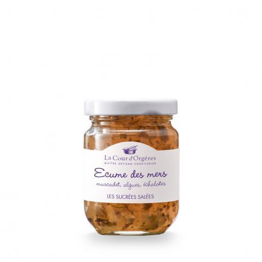 Ingrédients: muscadet Domaine Bonnet - Huteau 41 %, sucre, jus de citron, échalotes bretonnes 4 %, gélifiant : pectine, graines de chia, algues de la ferme marine du Croisic cueillies à la main puis déshydratées 0,2 % (dulse, laitue de mer), persil frais.