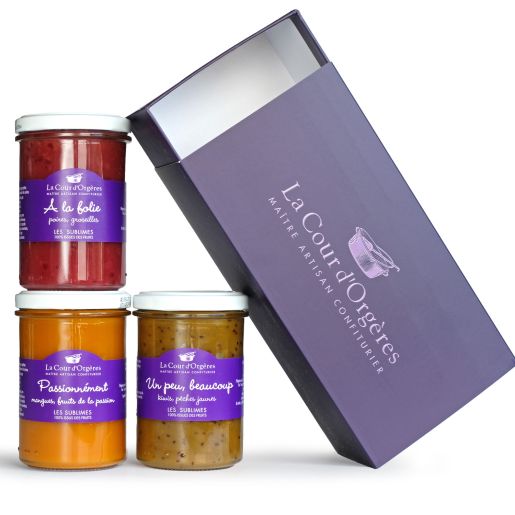 Un peu, beaucoup, passionnément, à la folie ! Offrez-lui votre plus belle déclaration gourmande avec notre nouveau coffret composé de 3 pots de confiture allégée 100% issue des fruits.