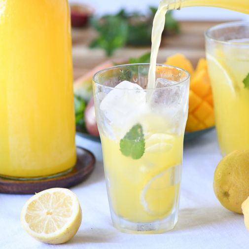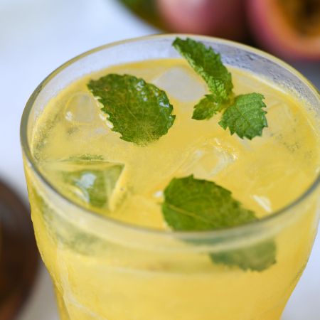 Pour la déco, vous pouvez présenter votre limonade avec quelques feuilles de menthe, des tranches de citron, une cuillérée de fruit de la passion frais ou une brochette de mangue.