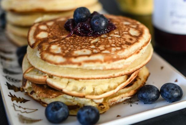 Pour démarrer cette journée en gourmandise, on lui prépare un bon petit déjeuner avec des pancakes maison nappés de la délicieuse confiture Papa chéri.