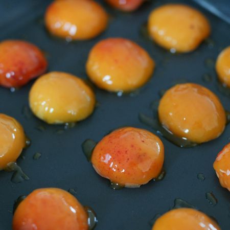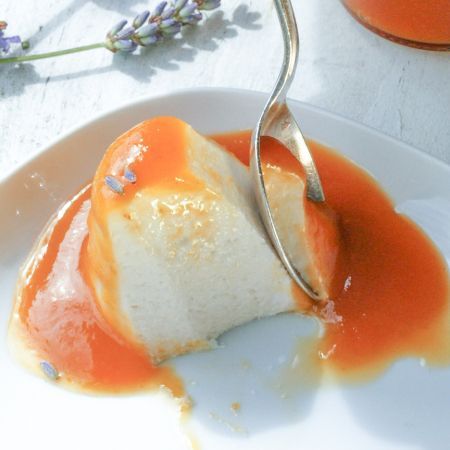 Démouler les panna cotta et napper avec notre confiture d'abricots du Roussillon, déposer quelques abricots rôtis autour.