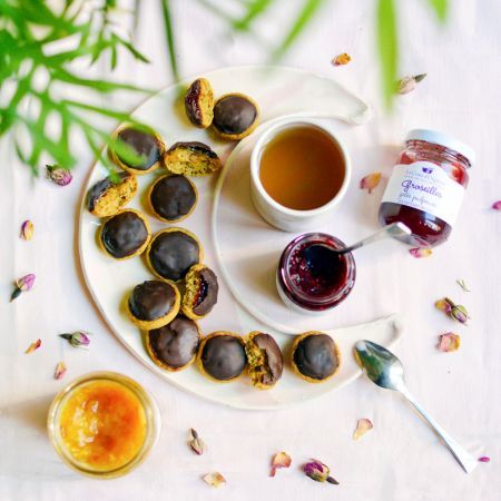 Sous une fine coque de chocolat craquante, se cache un cœur de fruit sur une génoise moelleuse. La blogueuse Marie Sweet and Sour nous propose sa recette de pim's vegan avec nos confitures pour un goûter plein de tendresse et de bonne humeur.