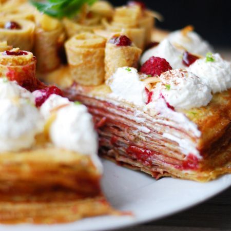 La Chandeleur est une fête immanquable ! En Bretagne, nous avons pour habitude de déguster les crêpes quasi tous les jours ! Pour changer un peu des crêpes "classiques", nous avons voulu réaliser une recette aussi bonne que belle ! Notre gâteau de crêpes à la gelée de framboises et chantilly fera son plus bel effet au moment du dessert ou à l'heure du goûter !