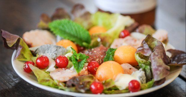 Commencez par disposer vos feuilles de salade tout autour de l'assiette.