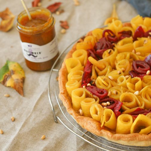 Une jolie tarte d'automne à la betterave rose et jaune, avec le bon goût de châtaigne de notre confiture Movember aux potimarrons, vanille, cannelle, gingembre et zestes de citron vert.