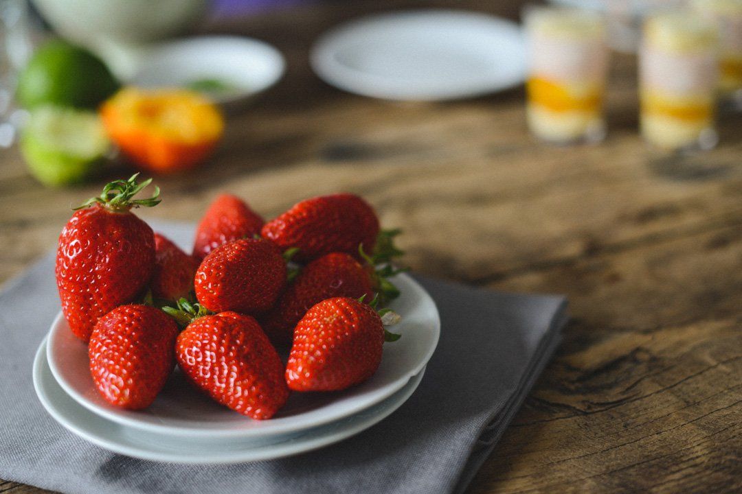Décorer d'une fraise fraîche entière ou en tranches (suivant la taille de la fraise ou de la verrine).
